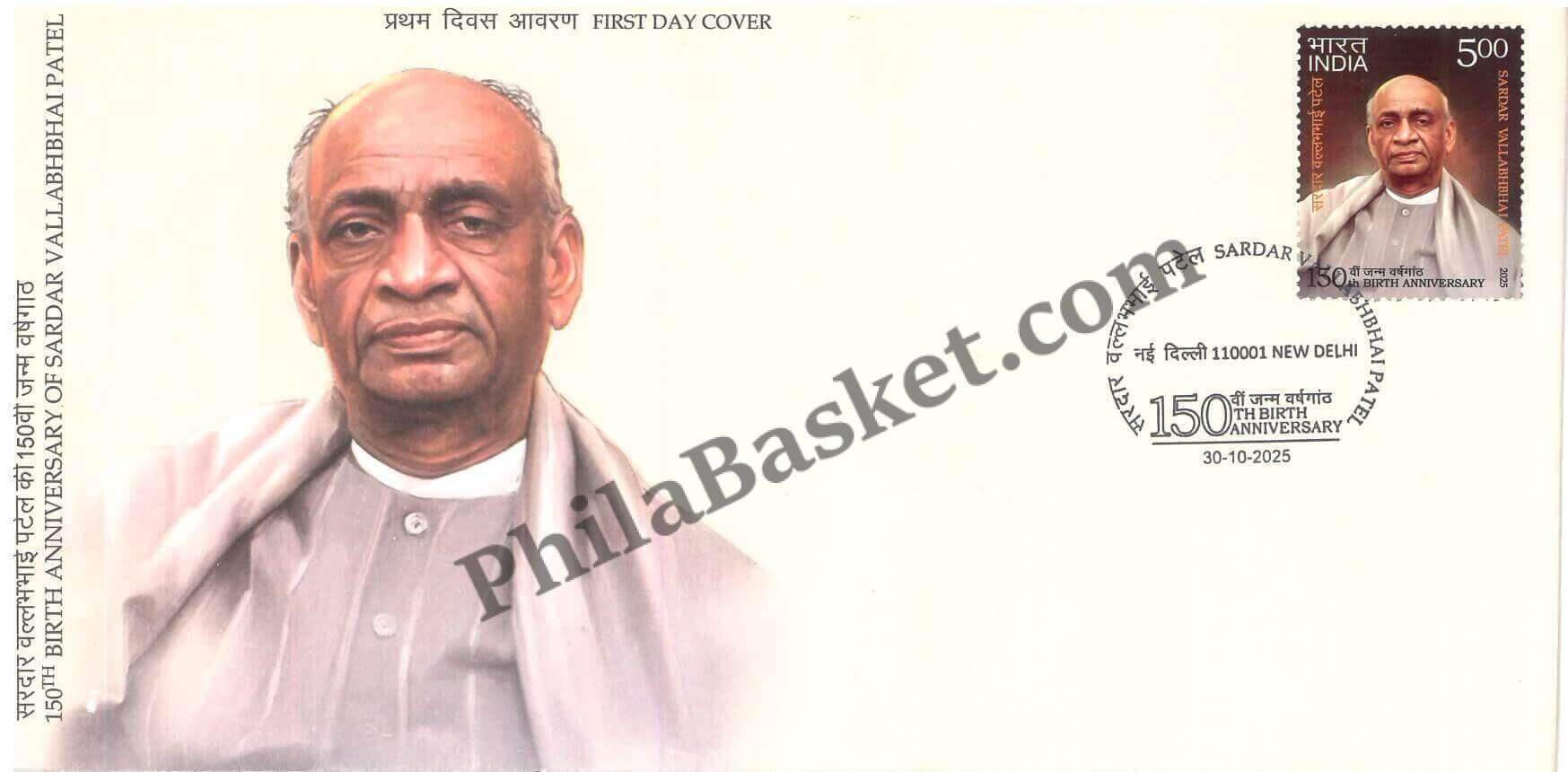 #FDC2144 – Sardar Vallabhbhai Patel – 150th Birth Anniversary – First Day Cover FDC – India – 30 Oct 2025 – Buy Indian Stamps – PhilaBasket.Com