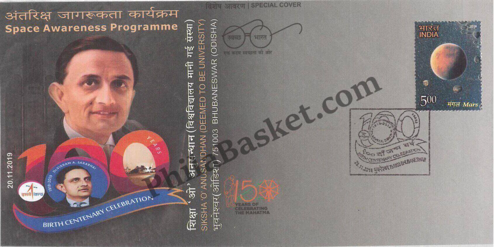 #SC1001 – Dr. Vikram A Sarabhai – Space Awareness Programme by Odisha circle – Special Cover – India – 20 Nov 2019 – Buy India Stamps – Philabasket.com