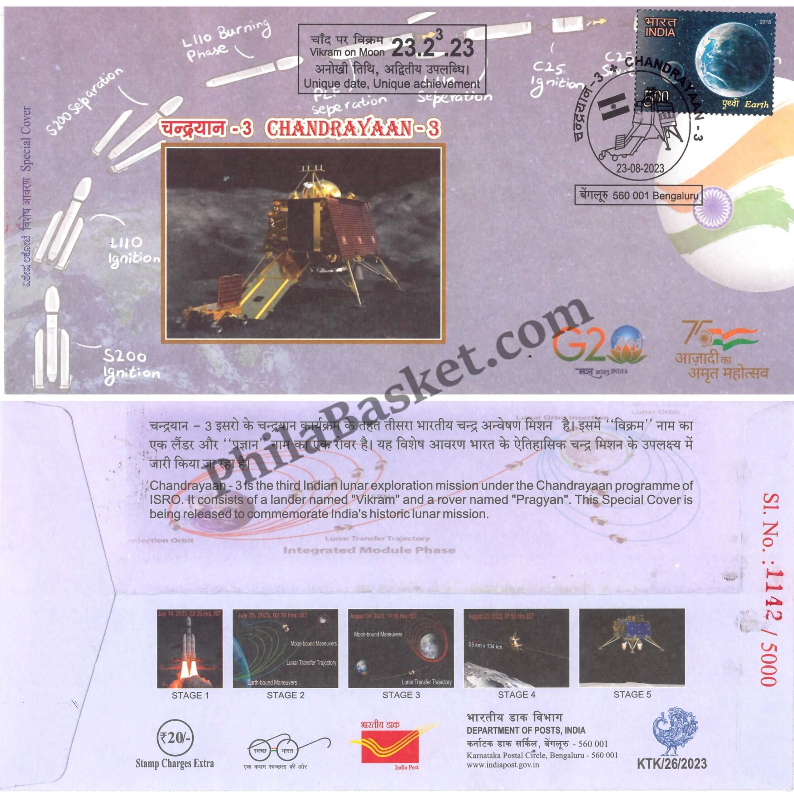 #SC146 – ChandraYaan 3 with Relevant Stamp – Karnataka Circle – Special Cover – India – 23 Aug 2023- Buy Indian Stamps – Philabasket.com